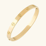 18k gold plating on surgical steel. Engineered to stay brilliant, always.