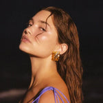 Discover timeless allure with a modern twist. The Pippa Gold Earrings feature a vintage irregular shape crafted from 18k waterproof gold. Dual columns of silver add a touch of contemporary brilliance to their antique-inspired aesthetic.