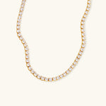 The Isolde Diamond Tennis Necklace is here to deliver eternal allure and craftsmanship. Its 18K Gold brings an everlasting sparkle, while the ravishing Diamond Simulants  - provide that extra glitz and pizzazz to your look, making it a standout piece bound to grab everyone's attention!